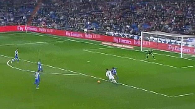 Real Madrid'in Espanyol'u 6-0 mağlup ettiği maçta Cristiano Ronaldo'nun ilk yarının sonunda kaydettiği gol izleyenleri büyüledi.