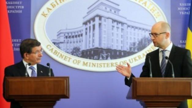 Ukrayna'ya ziyarette bulunan Başbakan Ahmet Davutoğlu mevkidaşı Arseniy Yatsenyuk ile ortak basın açıklaması yaptı.