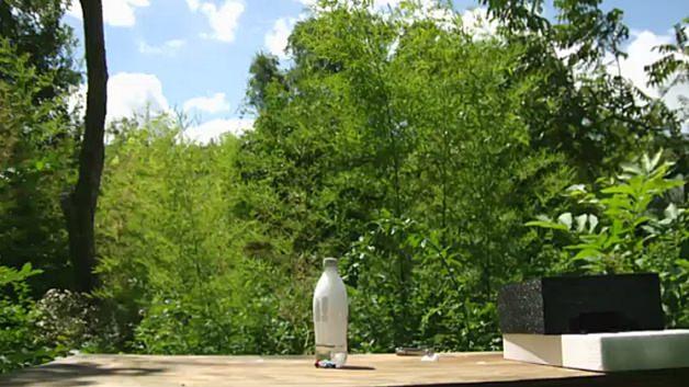 Şişe içerisine kuru buz atılıyor. Ardından güneşin vurduğu bir yere bırakılıyor. Şişenin içerideki genleşmeden dolayı bomba gibi patladığı görülüyor.