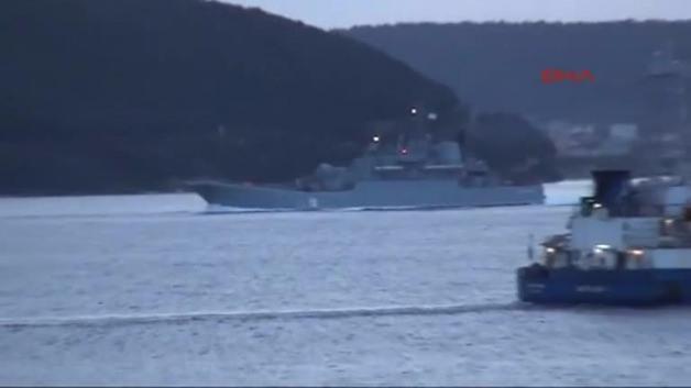 ÇANAKKALE Boğazı'ndan geçen Rus Donanması'na ait 158 borda numaralı 'Caesar Kunikov' isimli savaş gemisi, Akdeniz'e gitmek üzere yol aldı.