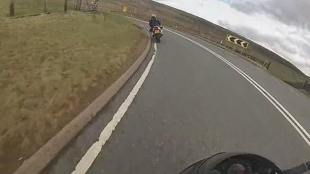 Üç motosikletli tek gidiş ve gelişli bir yolda ilerlerken, motosikletlilerden biri yoldaki "yavaş" uyarılarına uymayınca virajı alamadı ve karşıdan gelen otomobile çarpmamak için şarampole yuvarlandı.