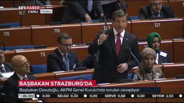 Başbakan Ahmet Davutoğlu, Avrupa Parlementosu'nda kendisine PKK'yla ilgili soru yönelten HDP'li Ertuğrul Kürkçü'ye tokat gibi bir cevap verdi. Cevap sonrası Davutoğlu parlementodakiler tarafından büyük alkış aldı.