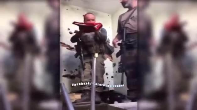 Nusaybin'de operasyonların tamamlanması sonrası Mehmetçikler Al-Yıldızlı bayrağı tek tek öperek göndere çekti.
