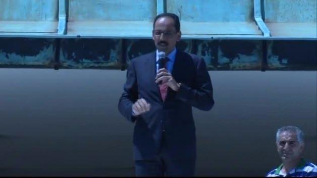İbrahim Kalın yaptığı konuşmada birlik çağrısı yaparak şunları söyledi: "Sizin desteğinizle inşallah bu milletin başı eğilmeyecek, bu ülkenin üzerinden karanlık bulutlar asla bir daha geçmeyecektir. Cumhurbaşkanımız çok selam ve hürmetlerini iletiyor. Bir mesajı var: 'Bu bayraklar bugün, yarın ve ilelebet dalgalanmaya devam edecek. Sokak sokak, mahalle mahalle bu bayrakları dalgalandırmaya devam edeceğiz. Buradan o darbecilere, o çapulculara, o darbecilere destek verenlere, her kim varsa onların arkasında, onlara buradan en net mesajı vermeye devam edeceğiz. Hepinize bu sadakatiniz, gayretiniz, bu dik duruşunuz için tek tek teşekkür ediyorum."