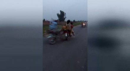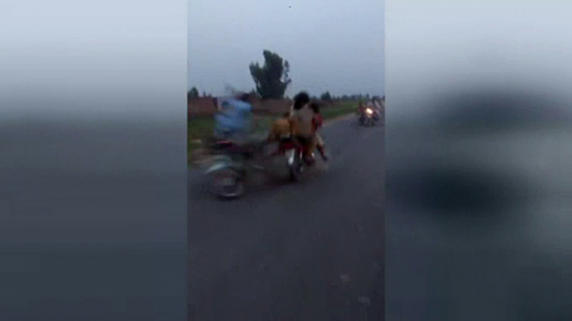 Pakistan’da tertip edilen izinsiz motosiklet yarışında korkunç bir kaza yaşandı; 3 kişi öldü, 2 kişi yaralandı. Yarışan motosikletlerden biri, karşı yönden gelen ve baba ile iki çocuğunu taşıyan motosikletle kafa kafaya çarpıştı. Kazaya bir diğer yarış motosikleti de karışınca ortalık adeta kan gölüne döndü. Feci kazada baba ve 2 çocuğu hayatını kaybederken, diğer 2 sürücü de yaralandı. Yaşananlarsa kameraya yansıdı.