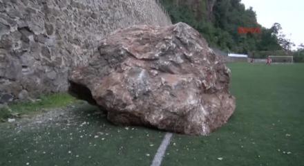 Trabzon'da amatör maçların yapıldığı Esentepe Mahallesi'ndeki sahaya kayalar düştü.