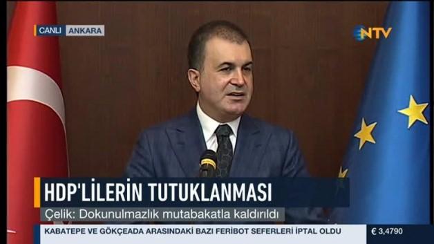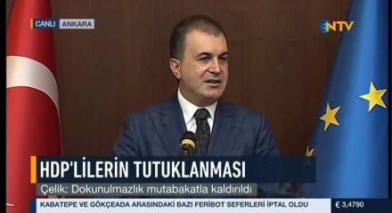 Avrupa Birliği Bakanı Ömer Çelik, HDP'ye düzenlenen operasyonun milletvekillerine yönelik değil, terör örgütüne destek veren kişilere yönelik olduğunu vurguladı.