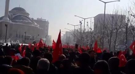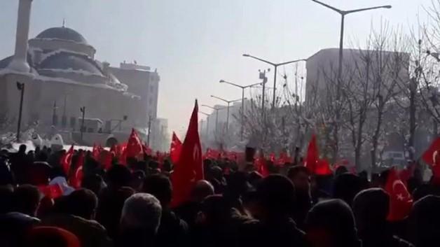 Hakkari'nin Yüksekova ilçesinde dondurucu soğuğa rağmen yaklaşık 3 bin kişi, ellerinde Türk bayraklarıyla terör örgütü PKK'nın saldırılarını protesto etti.