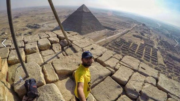 Gezdiği yerlerde çektiği fotoğrafları sosyal mecralarda paylaşan gezgin Enam Seyrek, bu defa Mısır piramitlerine tırmandı.