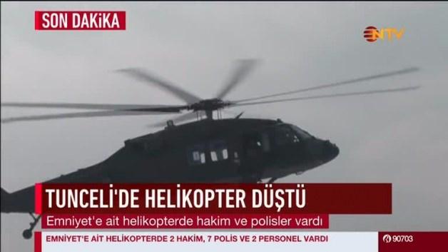 Tunceli'de içinde 11 kişinin olduğu helikopterin düştüğü iddia edildi. Referandumda görevli 1 hakimin bulunduğu helikopterde 7 polis ve 1 astsubay ile 2 de personel bulunuyordu.