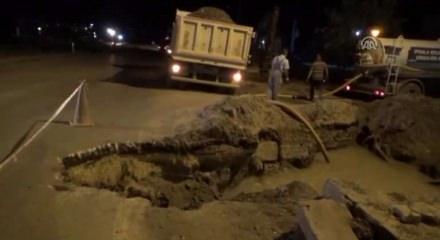 Çökme oluşan alan güvenlik şeridiyle çevrilirken, uluslararası kara yolu statüsündeki yolda trafik tek şeride düşürüldü.