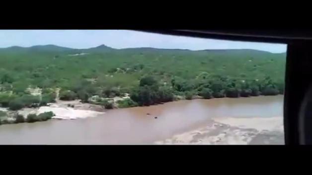 Afrika'da iki ülke sınırını çizen nehirde eşekler tarafından sürüklenen lüks araç, helikopterden görüldü.