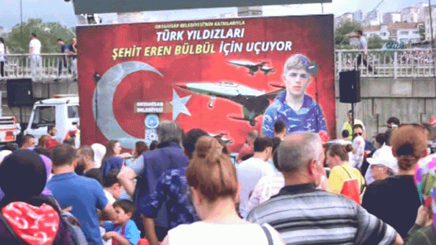 Dünyanın en seçkin gösteri uçuşu ekipleri arasında yer alan Türk Yıldızları, Trabzon’un Maçka ilçesinde terör örgütü mensupları tarafından açılan ateş sonucu şehit olan Eren Bülbül’ün anısına uçuş gösterisi gerçekleştirdi.