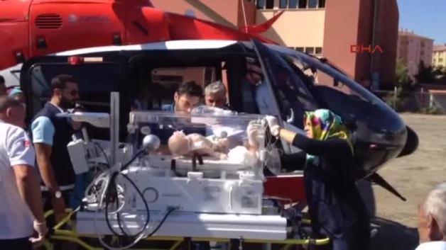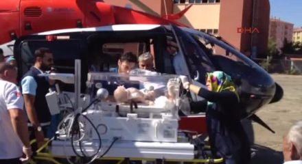 Çorum'da solunum ve kalbi duran, yapılan ilk müdahale ile yaşama döndürülen 15 aylık Muhammet Hüseyin Şimşek, ambulans helikopter ile başka bir hastaneye sevk edildi.